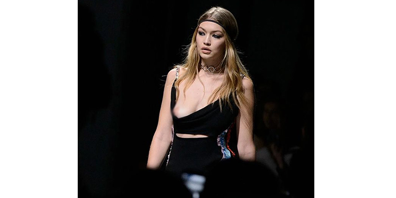 Algo parecido le pasó a la modelo Gigi Hadid, aunque en su caso sucedió en una de las pasarelas mientras desfilaba. Lo que le ocurrió fue que una de las camisetas, que en realidad no tenían mucho escote, se le bajó y se le vio un pecho sin querer.